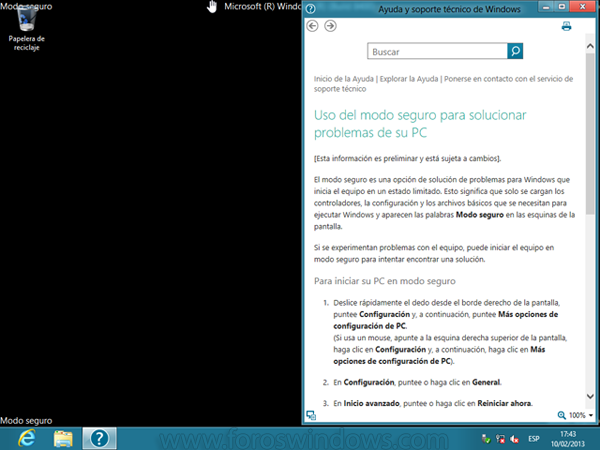 Se nos reiniciara Windows y sin tocar nada cargara el Modo seguro de Windows 8, esto lo hará en todos los reinicios.